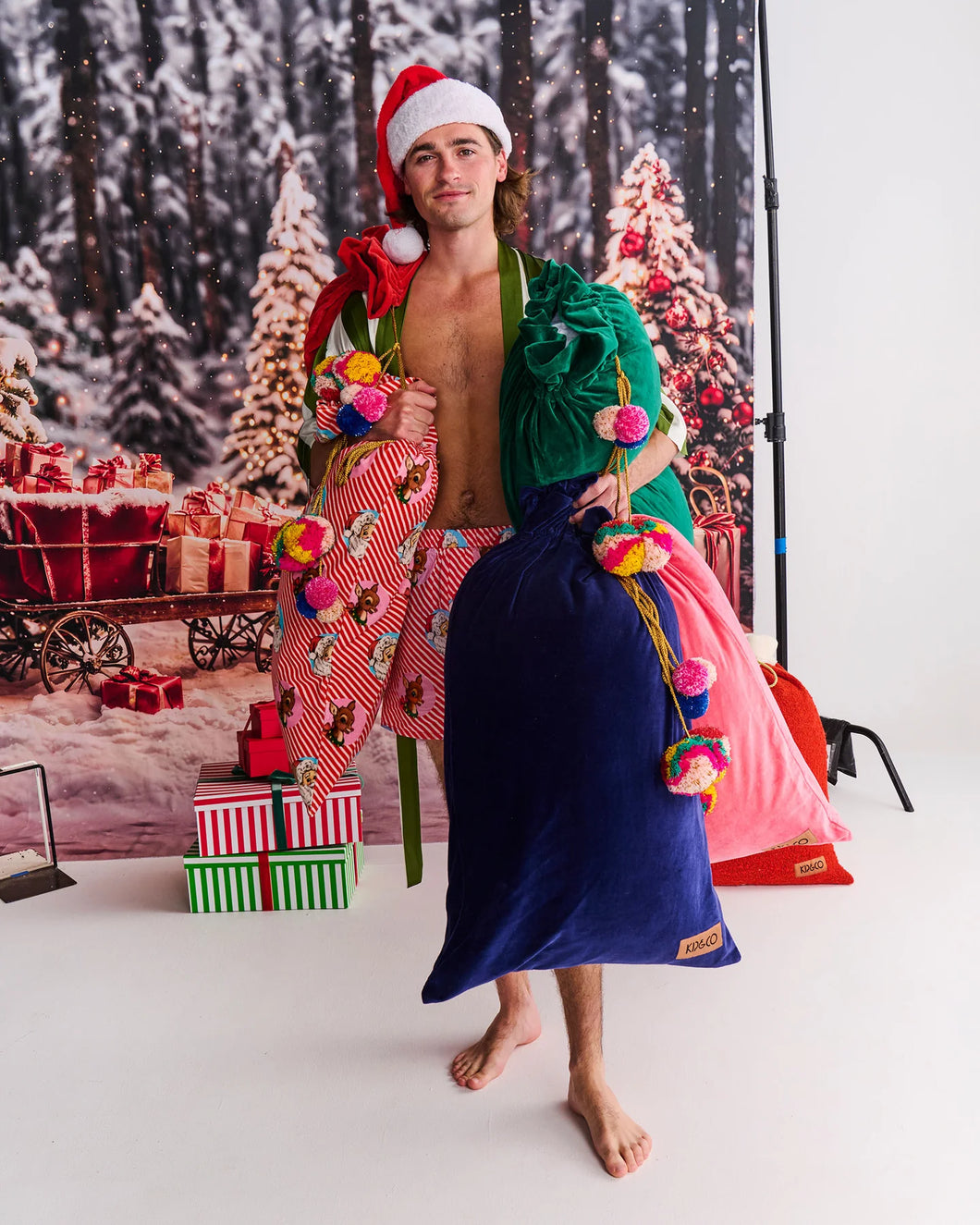 No peeking! Our Navy Blue Velvet Santa Sack is the ultimate Christmas stash spot, perfect for piling high with pressies and keeping the festive surprises under wraps. Big enough for all the goodies and bold enough to bring the merry vibes, this sack is made for pure silly season joy. A true Kip&Co Christmas classic, this Santa sack is made from our signature 100% cotton velvet in a dark navy blue with feature pom pom drawstring tie.
