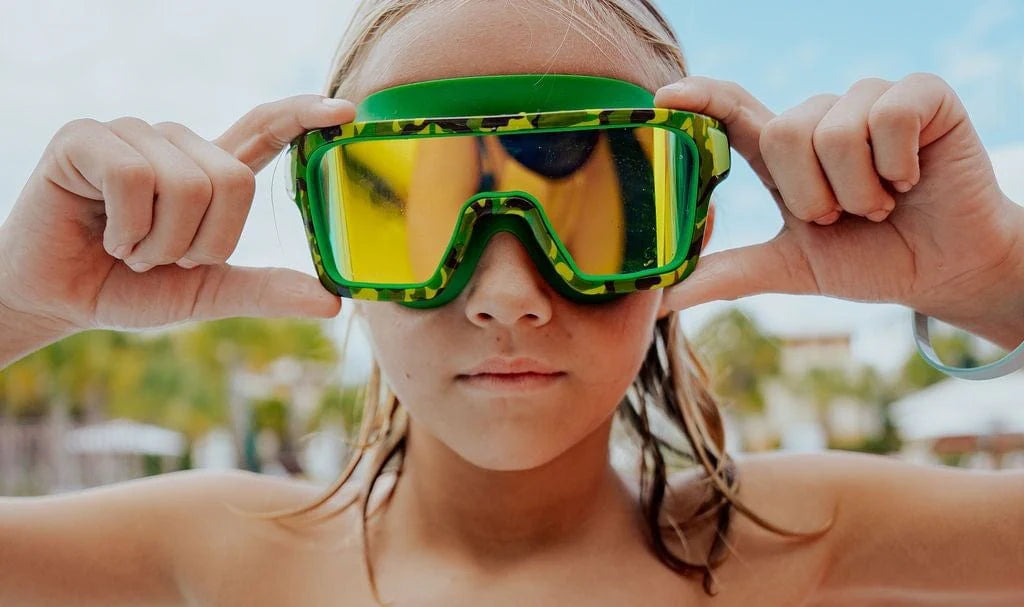 Conquer in camo! Gurtilla Green l Ops swim goggles feature a sleek frame covered in camo, this goggle also has a back clip for easy adjusting.