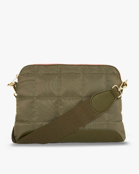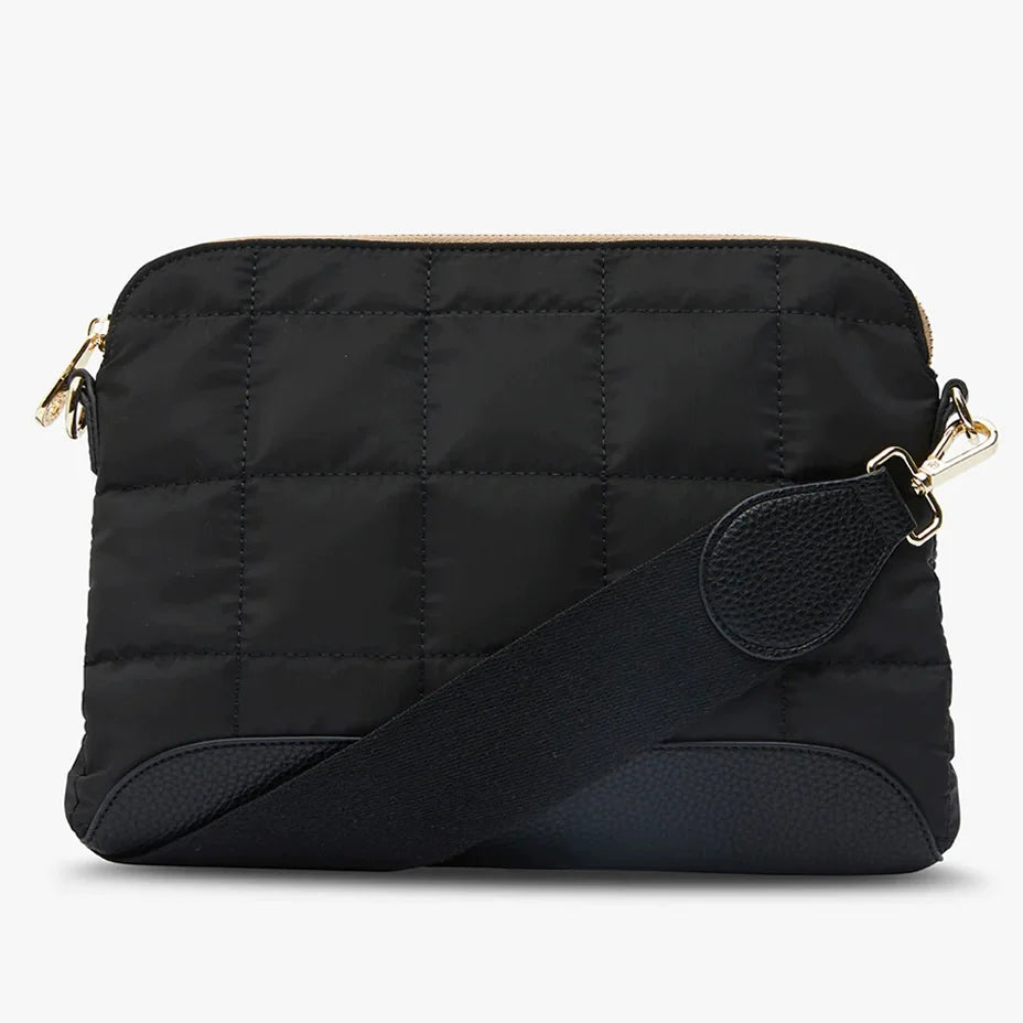 The Elms+King Soho Crossbody is the larger of our two Soho Crossbody Bags. It has a top zipper and features two strap options, both adjustable to 140cm. The crossbody opens to reveal a bright neon pop interior, and small zippered accessories pocket. Made from premium quilted nylon with 14-karat light gold-plated hardware the Soho Crossbody is the perfect bag for handsfree style.